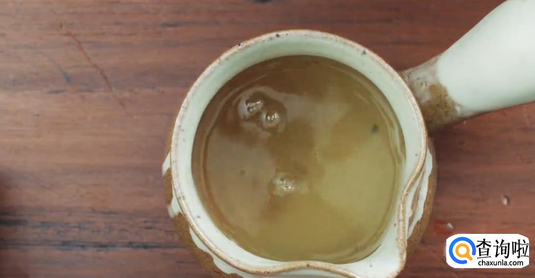 将水倒入煎茶壶,将茶煎开。然后将清汤倒入茶壶中,配比为1:1。