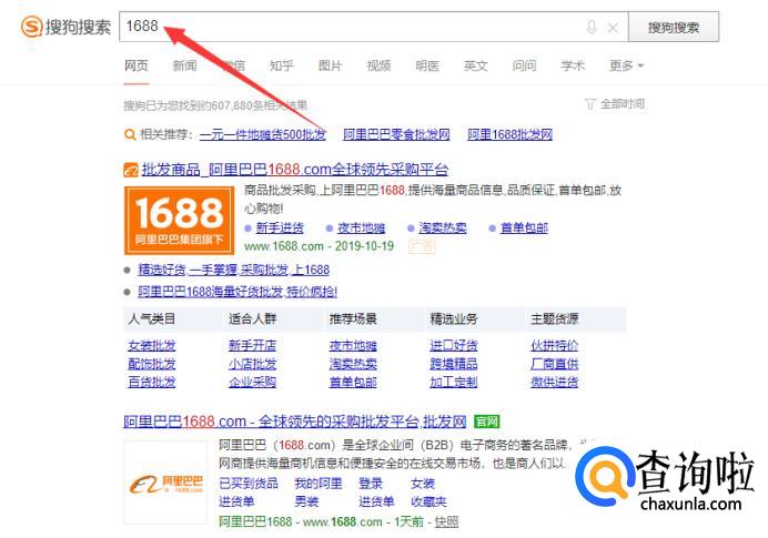 首先打开浏览器,在搜索栏直接输入1688,然后点击搜索。
