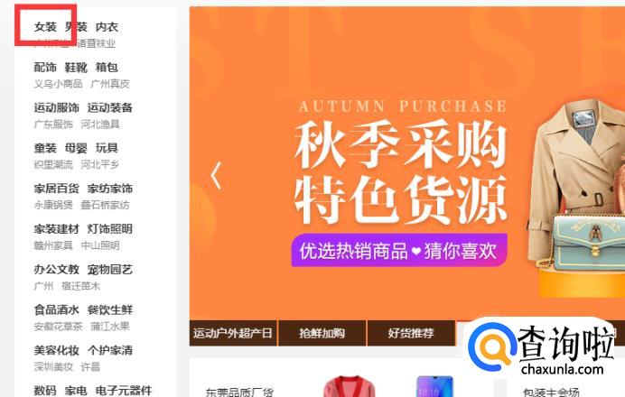 例如你要代发女装类的服饰,就点击女装。
