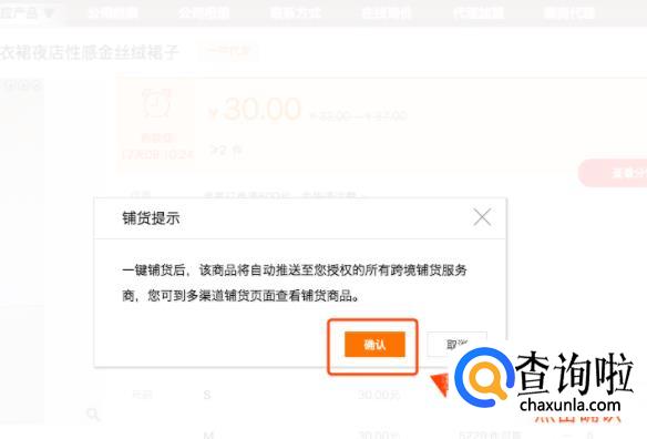 点击代发之后再点击<我要代发>、<一键铺货>、<申请代理>这三个步骤,然后选择上传到天猫或者淘宝店铺。这里我们点击<传淘宝>再确认代销产品即可完成一件代发。