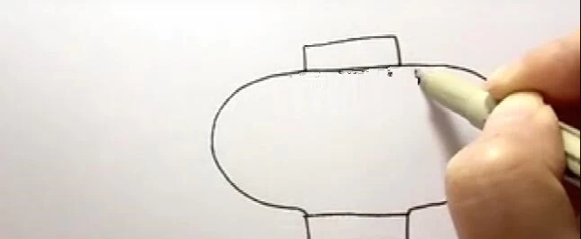 1、在纸上画出上下2个长方形,然后用弧线将两个长方形连接,这样灯笼的外部形状就画好了。