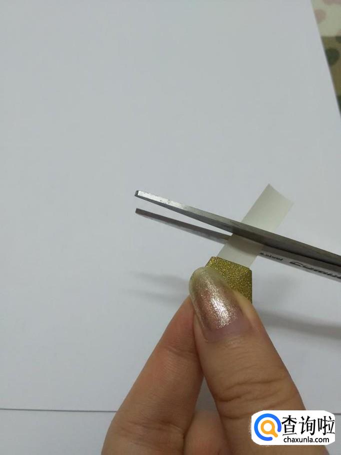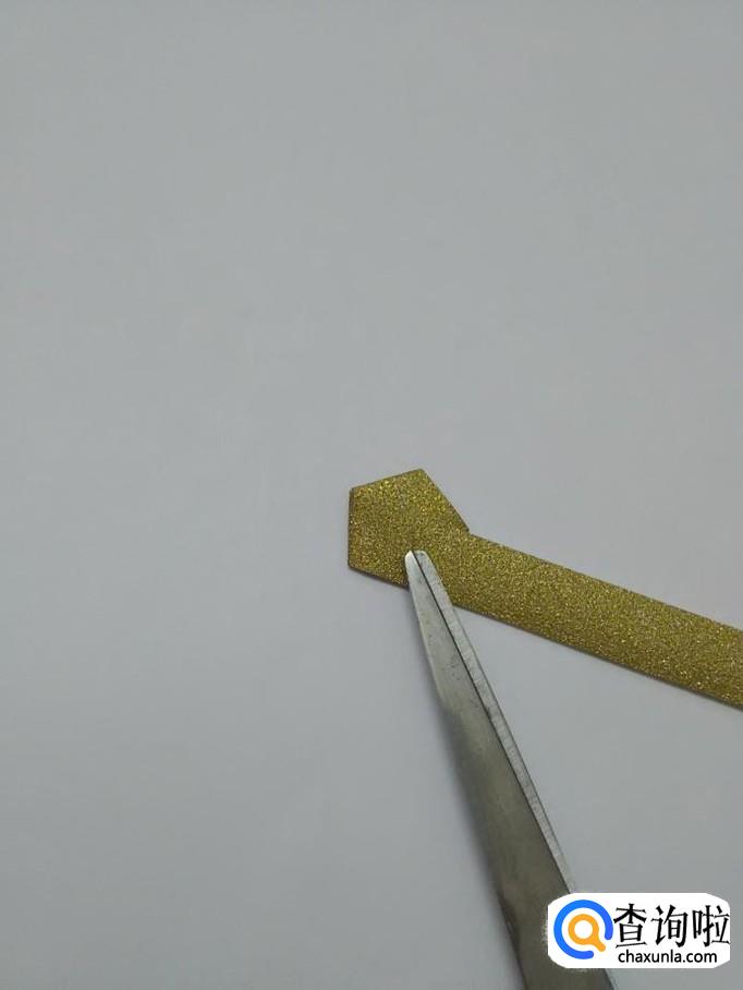 用剪刀把多余的纸条剪掉,只留半个五边形的宽度。