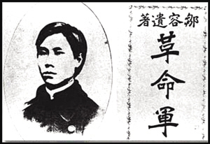 邹容(1885年—1905年),别名绍陶、桂文,是中国近代著名资产阶级革命宣传家。光绪二十九年(1903年),因为以“革命军中马前卒”写成《革命军》,而在上海英租界入狱,光绪三十一年(1905年)4月3日死于上海狱中。辛亥革命成功以后,孙中山追赠邹容为“陆军大将军”荣衔,崇祀宗烈祠。