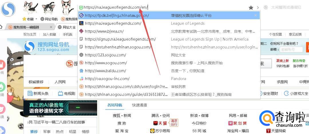 首先,我们在搜狗浏览器中输入lol美服网址“https://na.leagueoflegends.com/en/”,点击搜索。