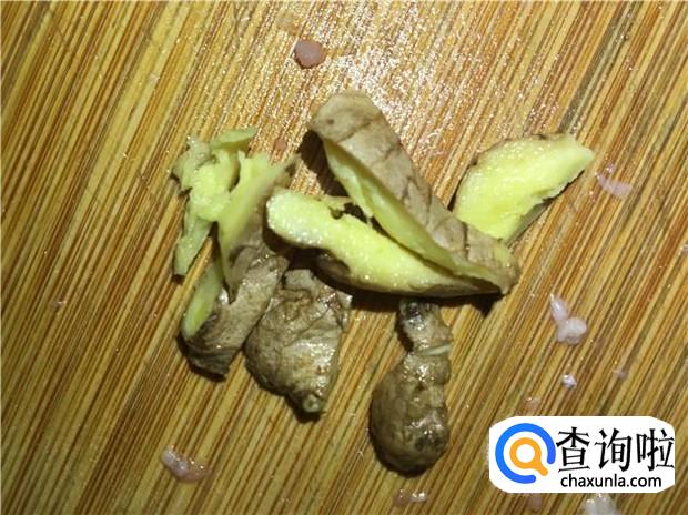 老姜清洗干净,用刀背拍扁,切碎,备用。