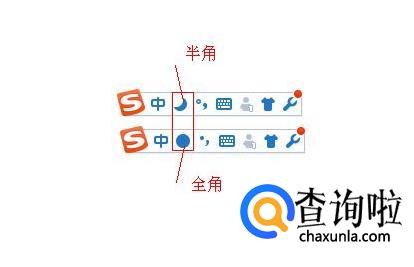 鼠标点击进行“全角”和“半角”的切换,满月时全角,弯月是半角。