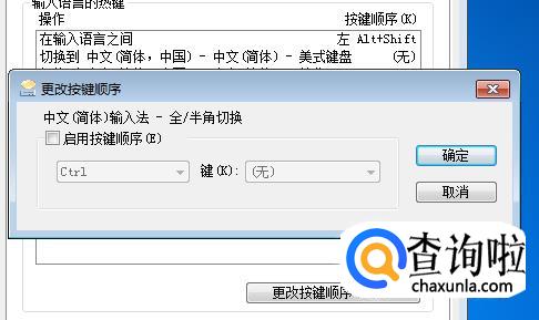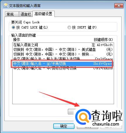 在高级键设置界面选中全角/半角切换快捷键,然后点击下面的“更改按键顺序”,如下图所示。