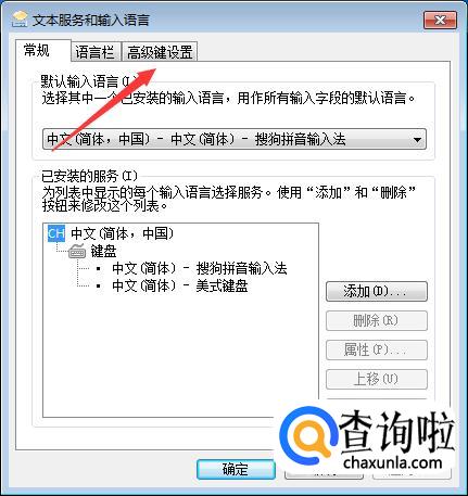 在弹出的文字服务和输入语言界面点击“高级键设置”,如下图所示。