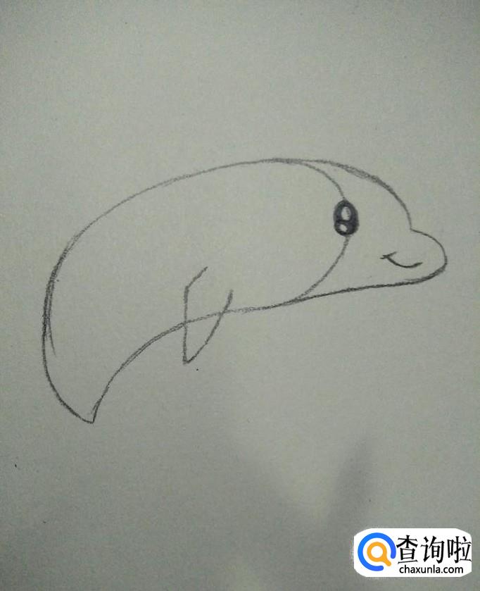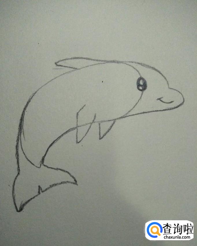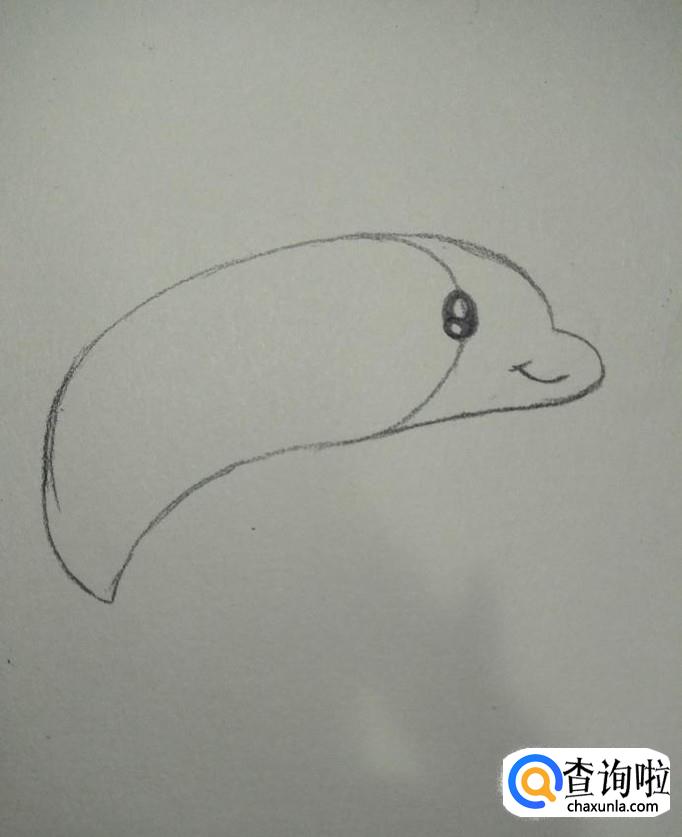 然后我们在中间线的部分画出海豚的眼睛,在前端画出海豚的嘴,如下图所示