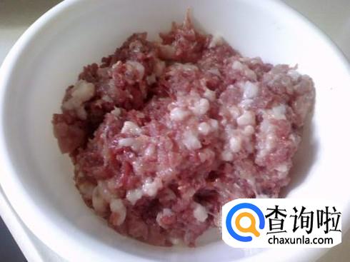 首先要准备好一斤肥瘦相间的猪肉,用刀剁成肉,这样子剁出来的猪肉口感比用料理机打出来的好,如果实在不想动手,可以放入料理机中打成肉末。