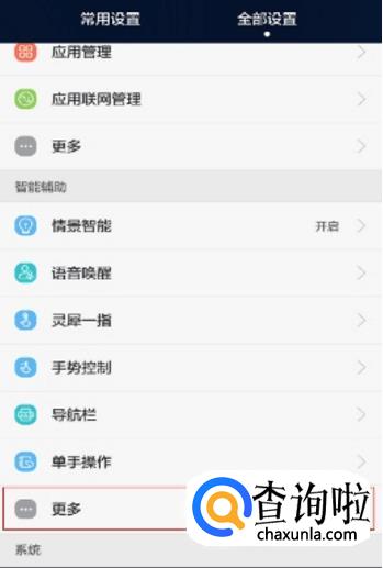 进入设置后点击全部设置或下拉屏幕,找到“更多”。