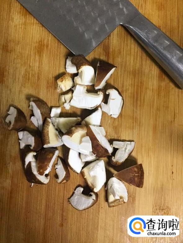泡发的黑木耳和切成小块的鲜香菇一起放入锅中。