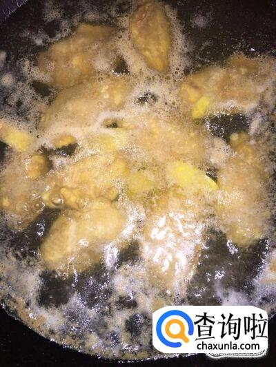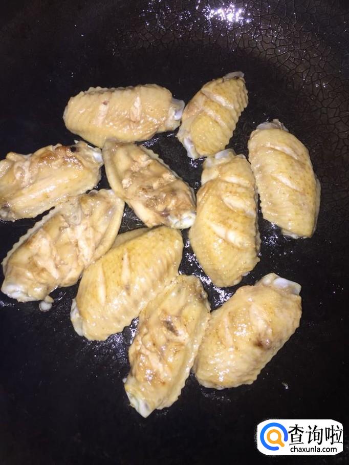 再开火,锅里加少量食用油,将鸡翅下入锅里,煎至表面金黄;