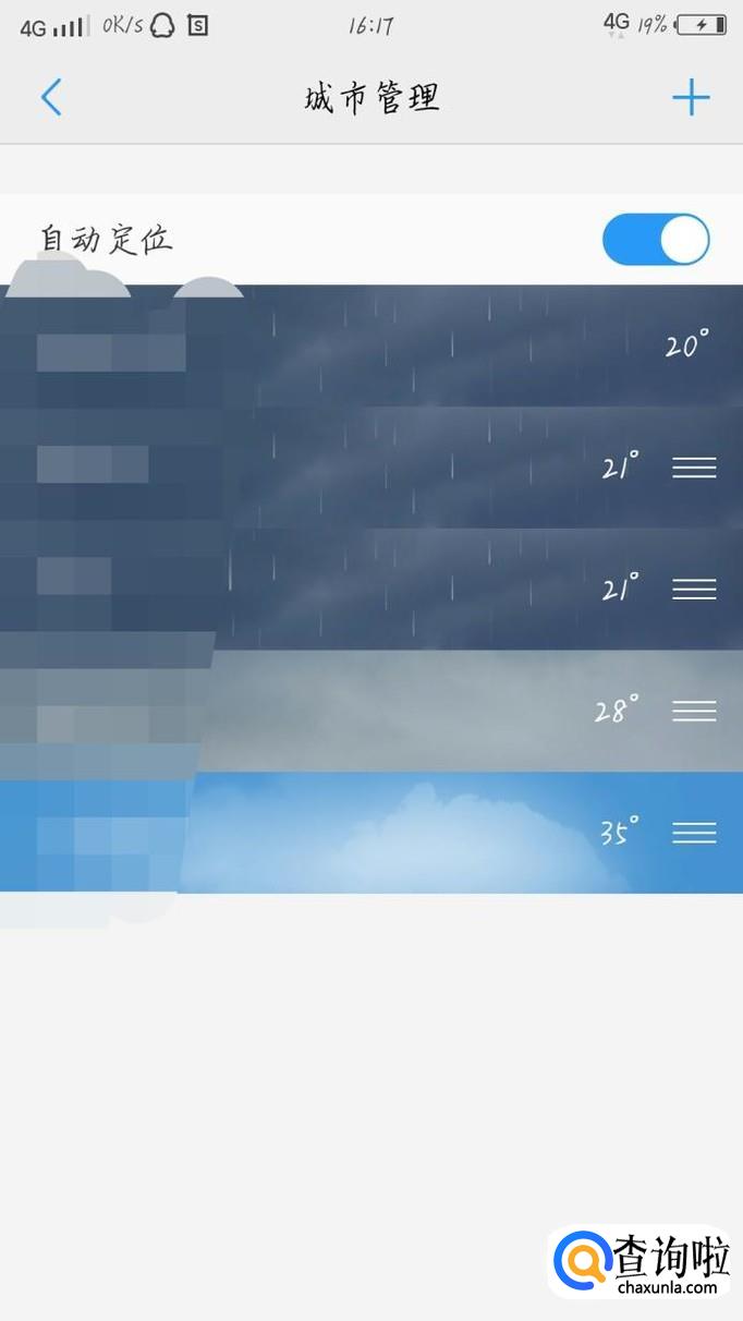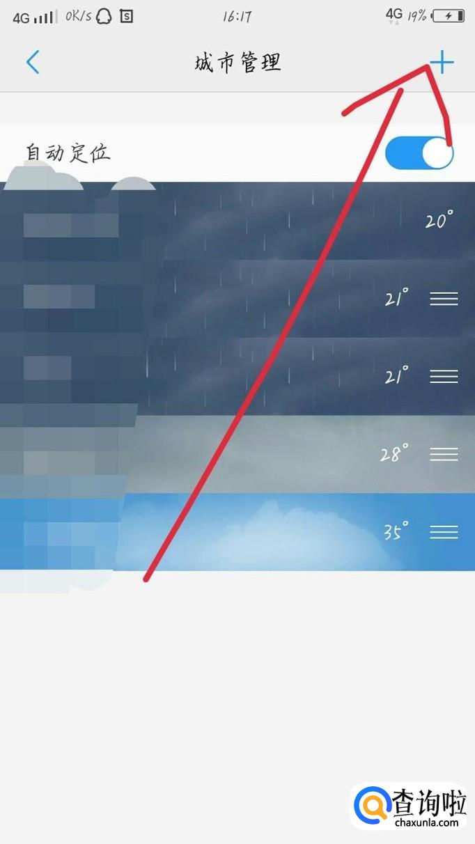 你可以开启自动定位功能,就可以自动定位你在的城市了。如图1所示。如果要添加新的城市就按右上角那个加的按钮如图2箭头所示。