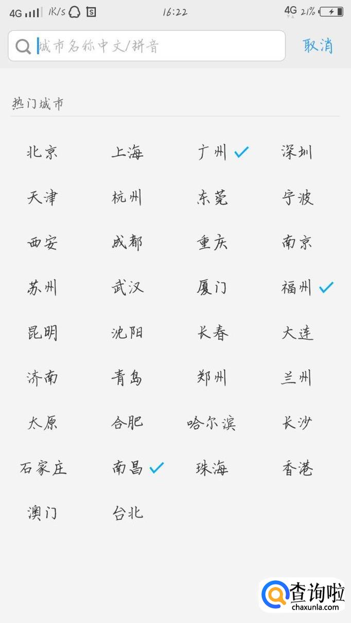 选择你要添加的城市,如图1所示。也可以直接在搜索框里搜索。点击之后就可以在你的这个界面看到你刚刚添加的城市了!