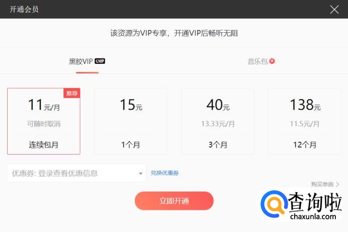 之后就提示我们这个音乐是需要我们开通会员的。