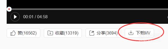 在视频窗口的下方有一个“下载mv”的按钮,我们点击这个按钮。
