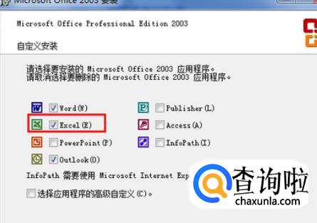 然后在软件列表中,选定要安装的程序,即excel软件,将前面的复选框选定就可以了。最后点击更新按钮。