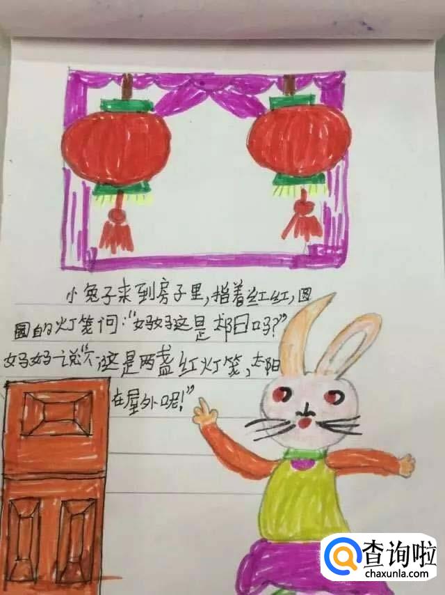 它来到屋子里,提着两盏红红的、圆圆的灯笼问妈妈:“妈妈,这是太阳吗?”