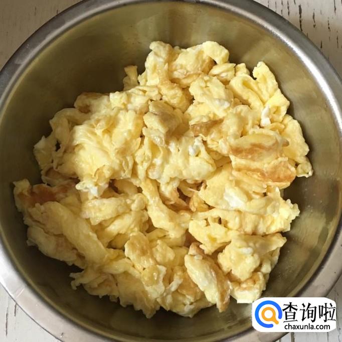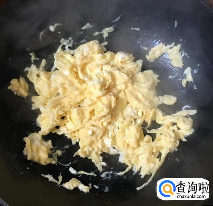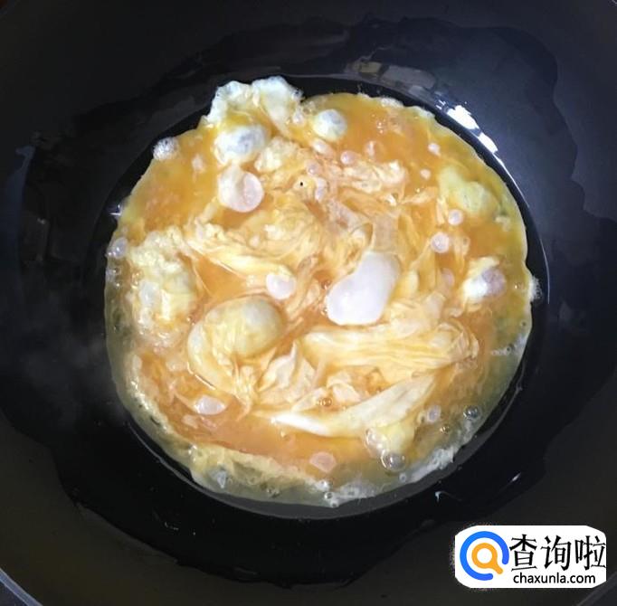 热锅加入适量的花生油倒入鸡蛋液炒香后盛出备用