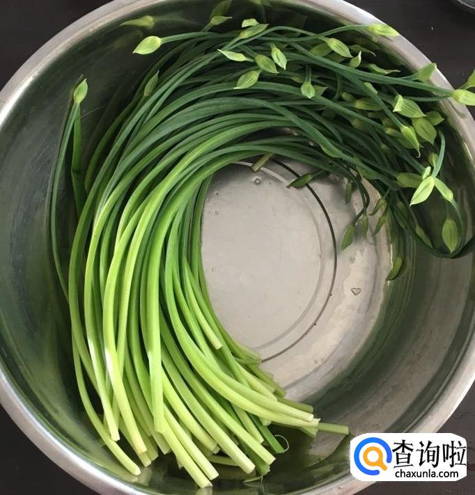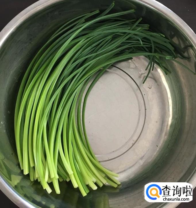 鲜嫩的韭菜苔400克择去未开的韭菜花冲洗干净,放入盆中浸泡十分钟左右控干水分切成长短均匀的段状