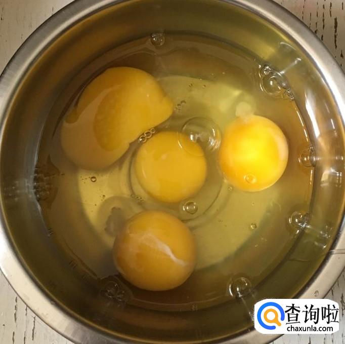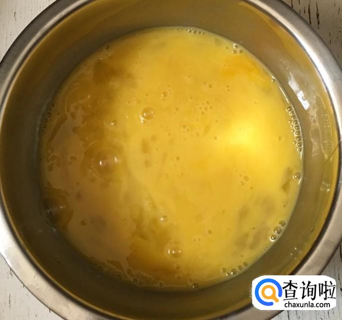 鸡蛋四个打入碗中加入适量的盐和料酒,用筷子搅拌均匀成鸡蛋液