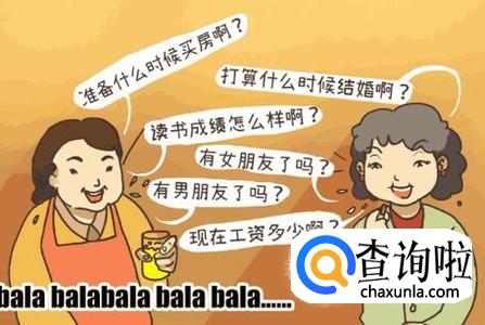 在春节的时候,三姑六婆会来家中做客,如果是大龄剩女的话,免不了要被催婚了,要是被三姑六婆知道你还没有对象,那么估计就要乱点鸳鸯谱了。所以过去几年租女友回家过年才会这么盛行,主要被家里烦的。如果三姑六婆开始对你施催婚大法的时候,你要使用牛头不对马嘴法来取胜,她们说东,你就答西好了。