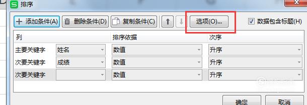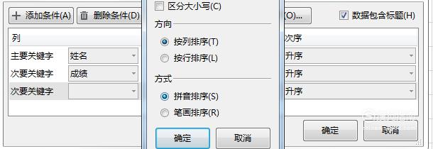 排序不仅针对数字,对于汉字也同样适用,在【选项】栏可以看见汉字的默认排序分为【拼音排序】和【笔画排序】,这里以【拼音排序】示范;