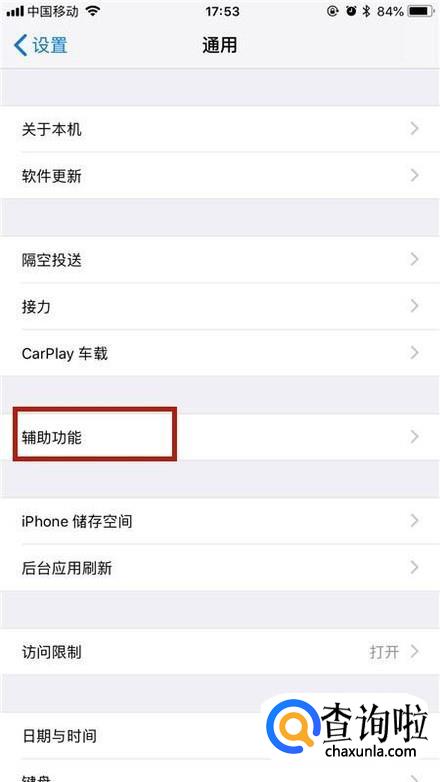 接着点击辅助功能,如下图所示。