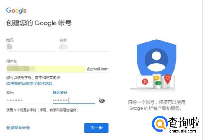 下载谷歌浏览器,进入注册页面据提示填写资料信息。