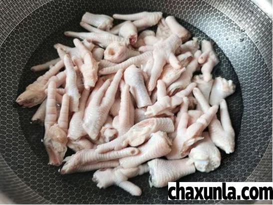 之所以鸡爪要放到冷水当中焯水,主要是为了有效的去除血水,并且可以有效的去除浮沫,当鸡爪焯完水之后,我们将其放到一边备用。
