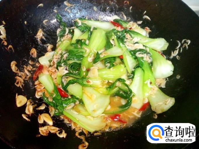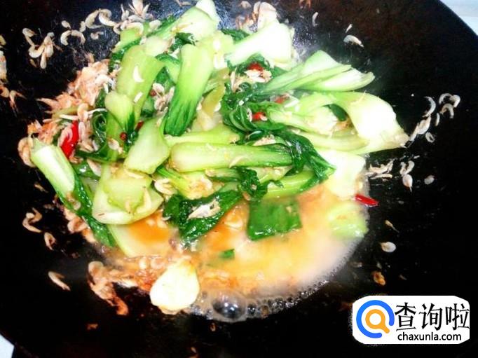 油菜炒至断生,放入勾兑好的薄欠,芡汁粘稠后,放入味精,关火出勺。