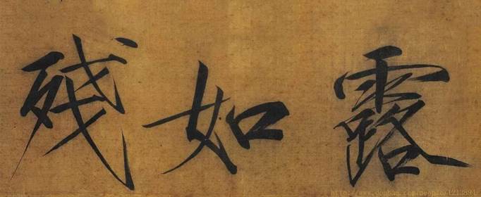 瘦金体运笔灵动快捷,笔迹瘦劲,至瘦而不失其肉,其大字尤可见风姿绰约处。因其笔画相对瘦硬,故笔法外露,可明显见到运转提顿等运笔痕迹,是一种风格相当独特的字体。