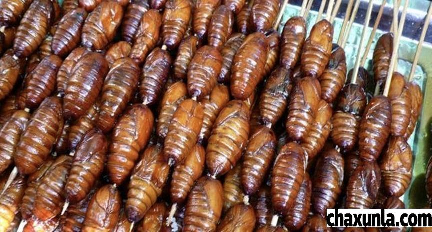 烤蚕蛹准备500克蚕蛹适量的辣椒粉,食盐和孜然粉将采用清洗干净,放到盘子中,然后放入蒸锅,在大火蒸10分钟之后,取出利用牙签一串一串的串好,放入烤炉,刷上一层食用油,烤箱之后撒上适量的辣椒粉,孜然粉和食盐,就可以吃了。