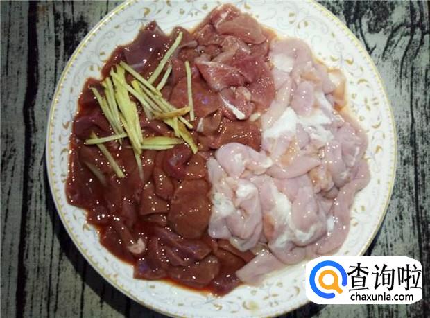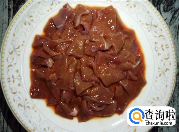 猪肝清洗干净,切成薄片,放入酱油、料酒,腌制一会。