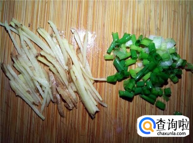 老姜切丝,煮这个粥的时候,一定要加一些老姜,可以去腥味。