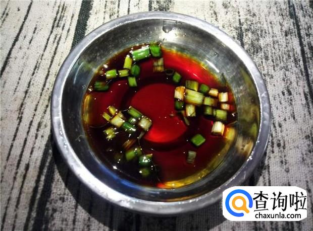 煮粥的时候,准备一些酱料,可以沾着猪肝吃的,葱末,再加入少许酱油,喜欢吃辣的可以加一下小辣椒。