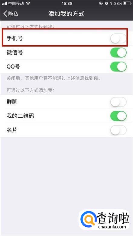 微信怎么取消电话号码查找到自己