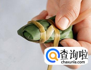 3、 粽绳子扎的要不紧也不松,粽子内部才会松紧正好,粽子熟后不至于太湿润或者太干紧。