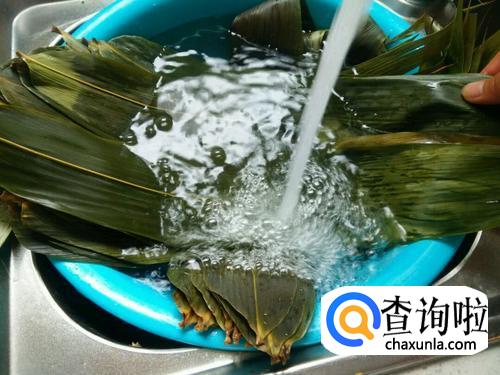 准备粽叶,把粽叶提前一晚浸泡,洗干净。
