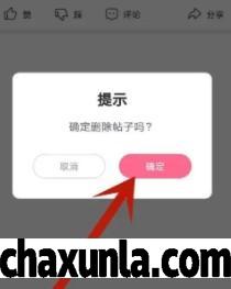 在底下弹出来的信息点击删除之后确定即可删除帖子。