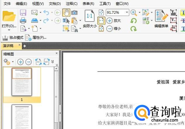 添加完成的pdf文件在打开后,会以缩略图的形式呈现在页面的左侧,如图