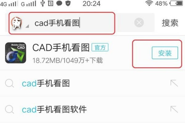 1、在浏览器或应用市场中搜索CAD快速看图,并安装。