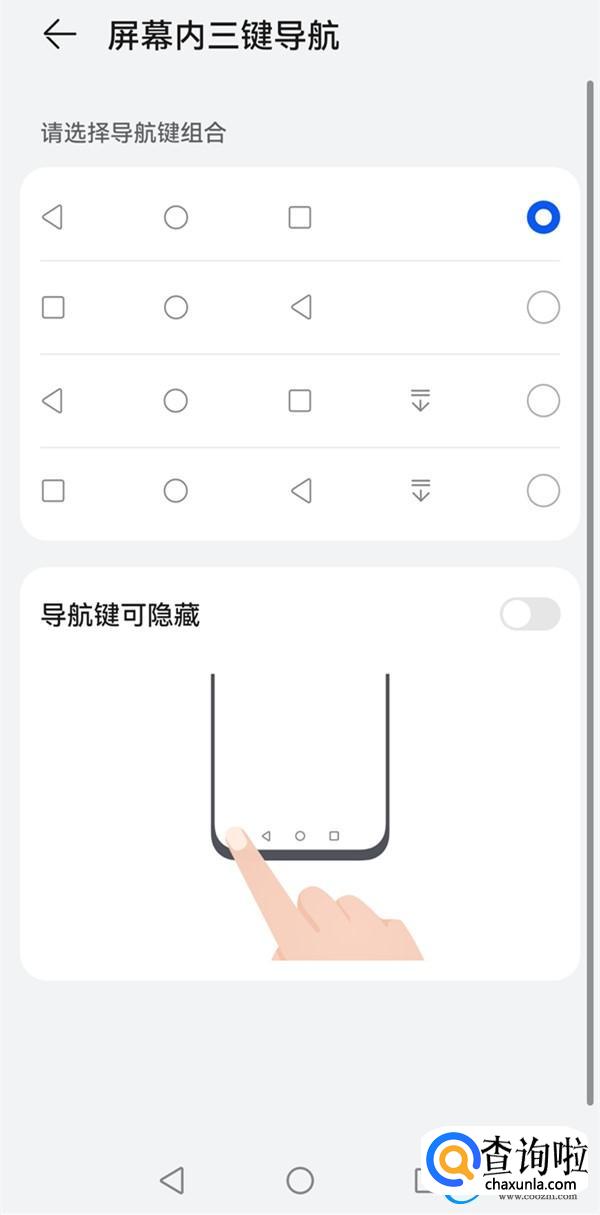 打开之后点击【系统导航方式】打开【屏幕内三键导航】即可。