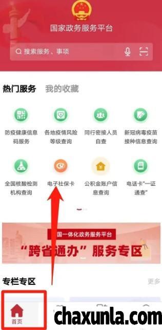 首先打开国家政务服务平台,点击电子社保卡。