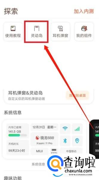首先我们打开小组件盒子软件,并点击【灵动岛】。