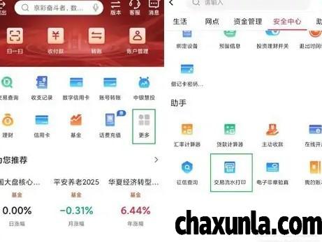 首先登录中国银行APP,点击更多,点击交易流水打印。