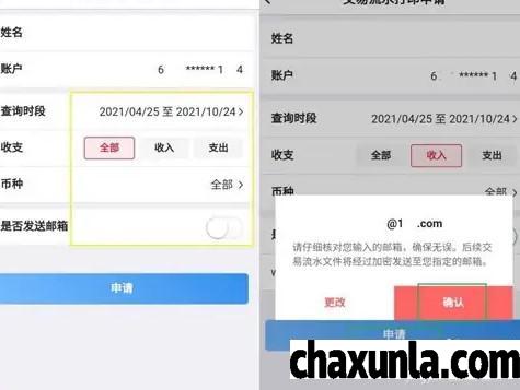 在申请时根据自己需求选择流水时段币种等信息,然后输入邮箱账号。