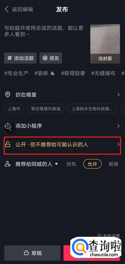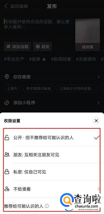 或者在发送作品时点击【公开】
