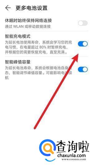 打开之后找到【智能充电模式】选项打开即可。